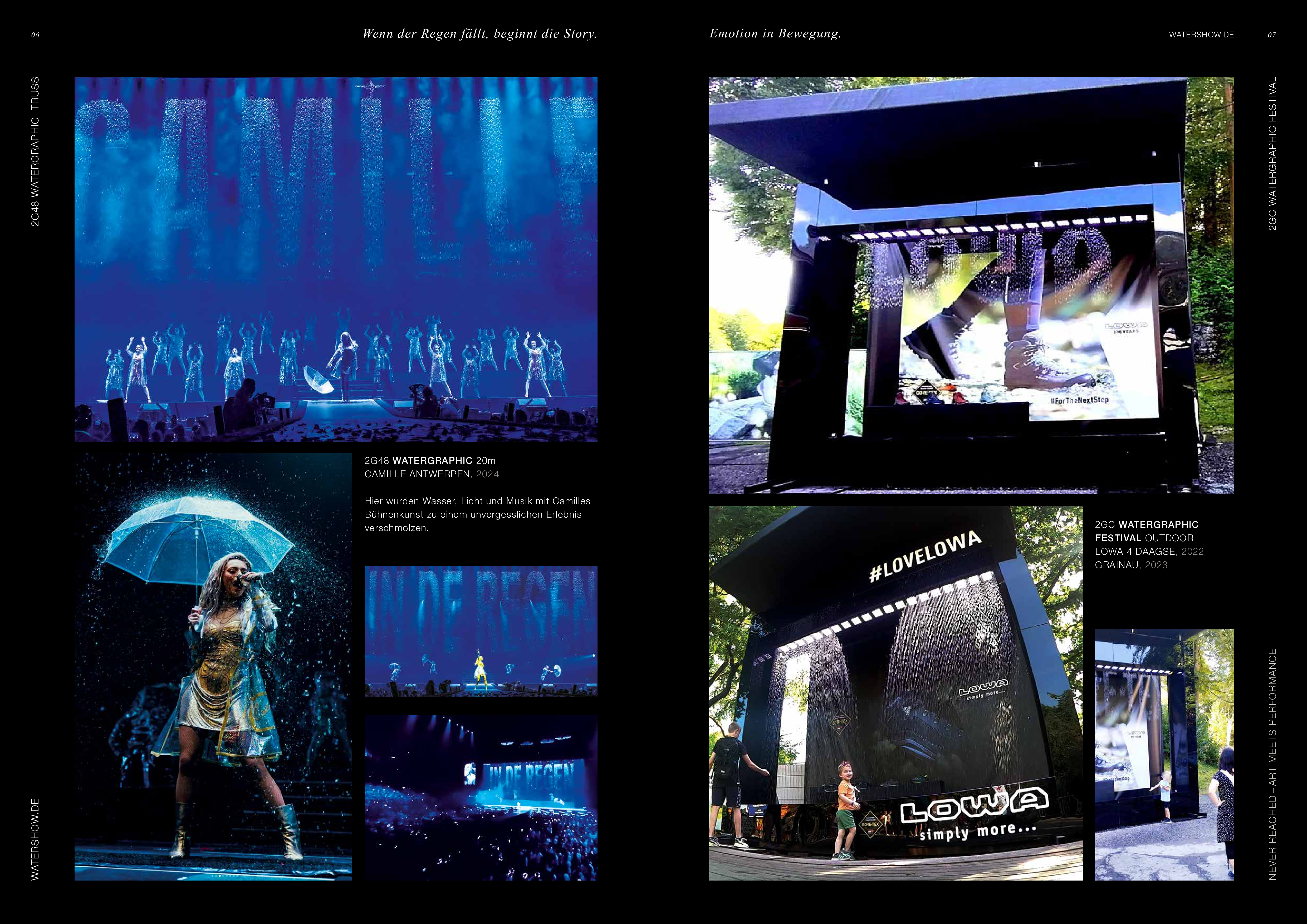 Watershow.de GmbH transforms water into unforgettable experiences. From dazzling fountains and elegant water walls to high-tech waterscreens that write logos and images with falling drops — every show is a one-of-a-kind highlight. With custom solutions, flawless engineering, and stunning visual impact, Watershow.de makes brands shine and events unforgettable.